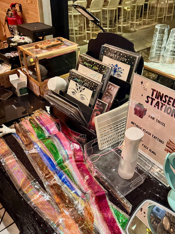 A: A hair tinsel bar involves professional stylists weaving thin, sparkly tinsel strands into guests' hair, creating subtle or bold shimmer that lasts for weeks. These stations have become popular at corporate events because they provide quick, personalized experiences (5-10 minutes per person), create visible participation that enhances event atmosphere, offer non-permanent beauty enhancement guests genuinely enjoy, generate social media content and conversation, and provide a unique experience beyond typical event offerings. At our Bar Toti event, Central Texas Face Painting operated the hair tinsel station, which became the hit of the night. Guests left the event with literal sparkle, extending the celebration beyond the venue. Hair tinsel bars work particularly well for events with predominantly female attendance or creative industry crowds who appreciate fashion-forward experiences.